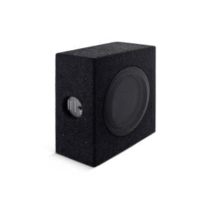 The 8″ driver with two-ohm dual voice coils is housed in a sturdy sealed enclosure and is protected behind a metal mesh.