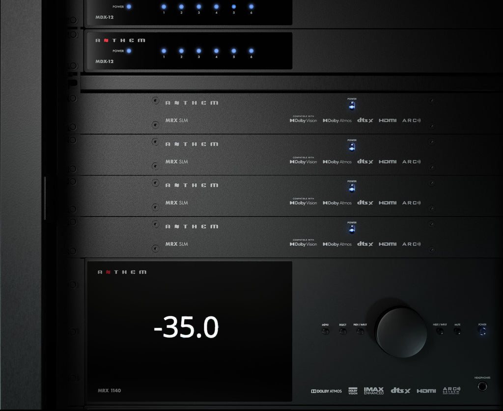 MRX SLM:n kompakti muotoilu ja poikkeuksellinen äänenlaatu tekevät siitä täydellisen ratkaisun yhden huoneen äänijärjestelmään. Voit myös pinota useita MRX SLM -laitteita ja rakentaa tehokkaita mutta tilaa säästäviä kokonaisuuksia useisiin kotiteattereihin tai monikanavaisiin järjestelmiin eri puolille kotiasi. Ja Anthemille ominaisen huippuluokan äänenlaadun ansiosta voit luottaa siihen, että jokainen MRX SLM tarjoaa mukaansatempaavan kuunteluelämyksen.