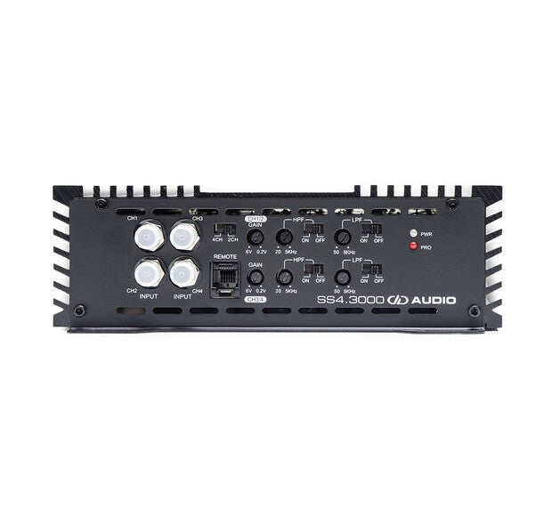 The SS4.3000 is a full-range 4-channel amplifier that delivers 750 watts per channel. The amplifier is suitable for driving both subwoofers and speakers, thanks to its wide filters.