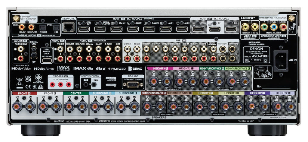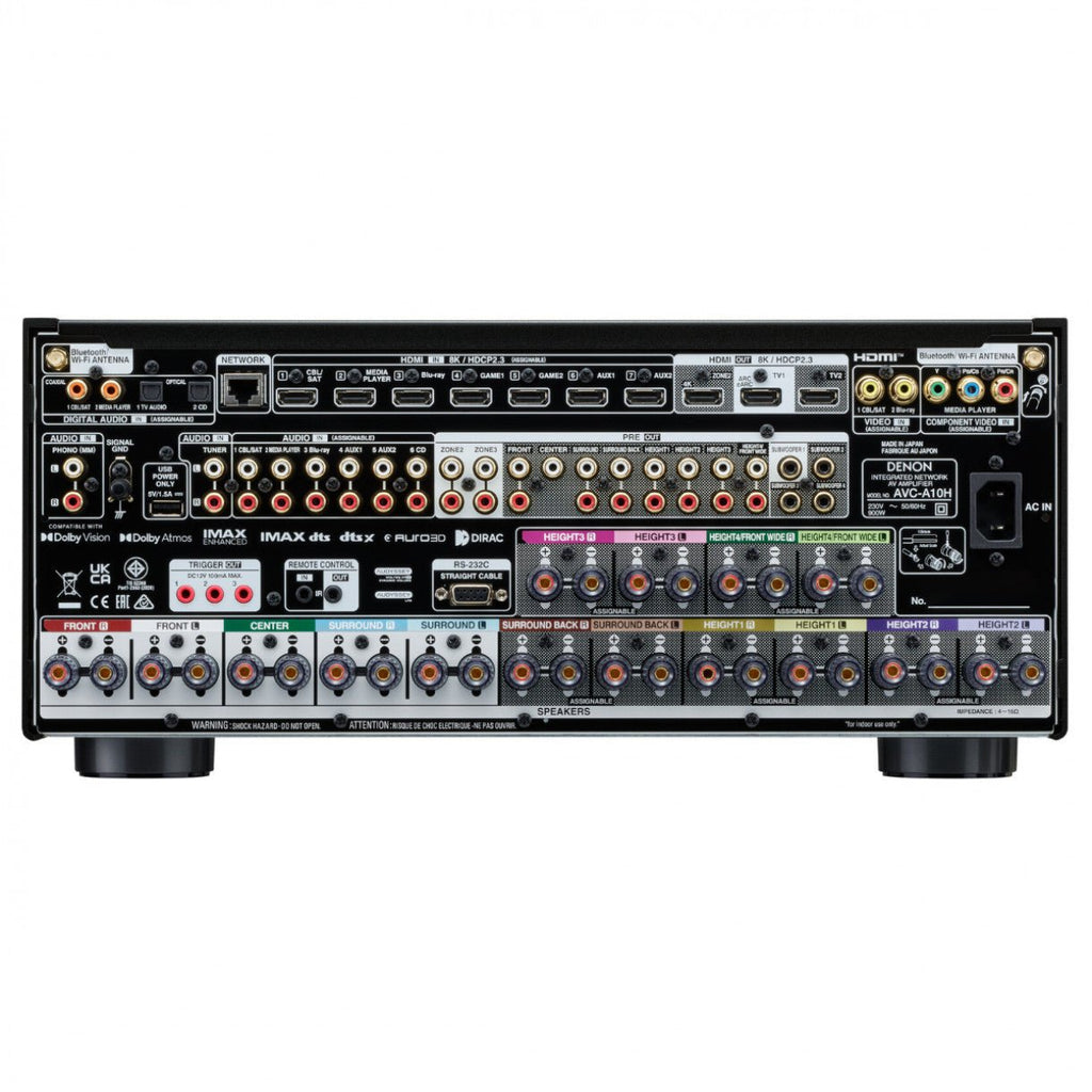 The Denon AVC-A10H home theater amplifier offers the power and features to create your dream sound system. It features a robust 13.4-channel power amplifier that drives up to 13 hi-fi speakers and 4 active subwoofers. Processor mode allows you to switch off some or all of the power amplifiers, allowing you to use the device as a reference-level AV preamplifier. Enjoy immersive audio formats such as Dolby Atmos, DTS:X, IMAX Enhanced and AURO-3D. Up to 8K quality and reliable HDMI 2.1 technology ensure compatibility for years to come. The Denon AVC-A10H is manufactured in Japan at Denon's traditional Shirakawa factory, ensuring unparalleled quality.