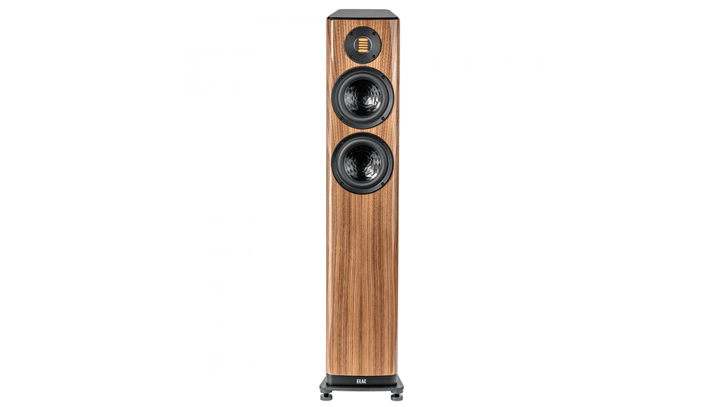 Meet VELA - A combination of technologies refined over 95 years of ELAC Acoustic engineering and design. High-gloss lacquered and wooden veneered cabinets with a visually stunning trapezoid shape that improves acoustics while making a profound visual impact. The VELA builds on the highly successful and high-performing Series 400 while improving stereo definition and multi-channel audio in modern furnishings. But the advantages are distinct. Combining a newly designed cabinet in combination with the crystal aluminum-sandwich woofer—and ELAC's inimitable JET 6 tweeter—this speaker is bound to make an impact.
