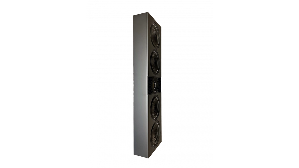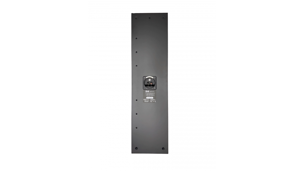 The speaker can be mounted vertically or horizontally using four recessed keyhole mounts. Cable channels provide convenient space for cables, allowing the speaker to be mounted completely flush against the wall.