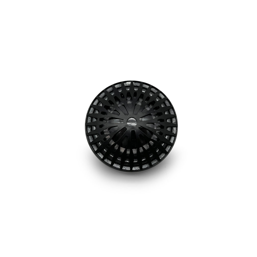 Deluxe protective stainless-steel grille with perforations calibrated to function as an acoustic lens, guaranteeing the sound emission will be in the on-axis part of the speaker, and also curved to the sides, which is very useful in car installations where speaker placement often results in off-axis listening.