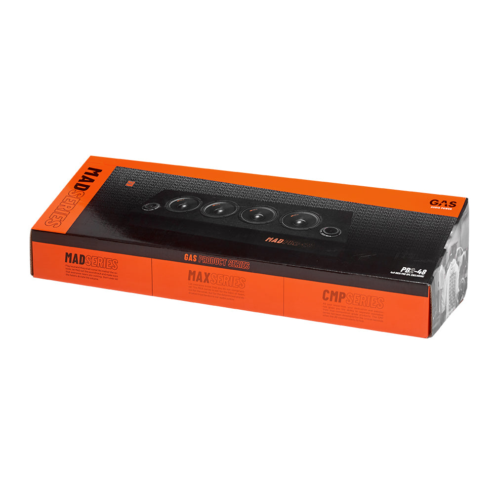 The MAD PB2-48 is cleverly designed! The MAD PB2 series has slightly larger external dimensions than its smaller brother, the MAD PB1. GAS has adjusted the enclosures to be deeper in order to produce even more midbass – something you will definitely appreciate. And that's not all. At the ends of the enclosure you will find a reflex port that ensures optimal sound pressure. Do you want to place the "raggar" on top of or near the sub enclosure? In that case, place the included MDF boards in place and cover the ports. This way the enclosure becomes closed and integrates better with your sub.