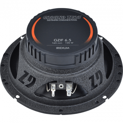 Ground Zero Iridium series 6.5″ 2-way coaxial speaker. HQPP cone in midbass. A 13mm element on a mylar cone is used as a tweeter.