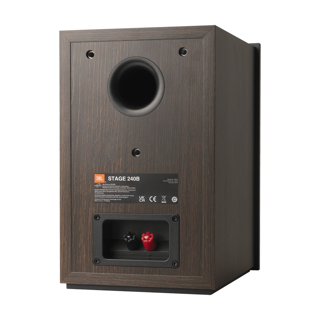 Designed at JBL’s world-renowned Acoustic Design Excellence Center in Northridge, California, the Stage 240B is the smallest shelf speaker in the JBL Stage series. Its small footprint delivers impressive power. The 240B is versatile enough to be used as a main or surround speaker. It features a 2-way design with next-generation patented High-Definition Imaging (HDI™) waveguide geometry, a 1” (25 mm) anodized aluminum dome tweeter, and a 4.5” (114 mm) polycellulose Ribbed Cone woofer for JBL’s signature deep bass.
