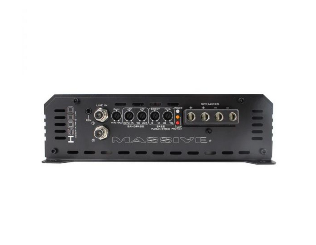 Outside you will be impressed by a smooth brushed black aluminum surface with our logo glowing radiantly in blue, announcing to the world you have MASSIVE equipment. The top of the unit includes a Digital Voltage LED Display with Power, Clipping & Protection Indicators allowing you to monitor your input power to help protect your investment. Furthermore, the built-in cooling fan will help keep your PCB cool during extended operating times and hot conditions.