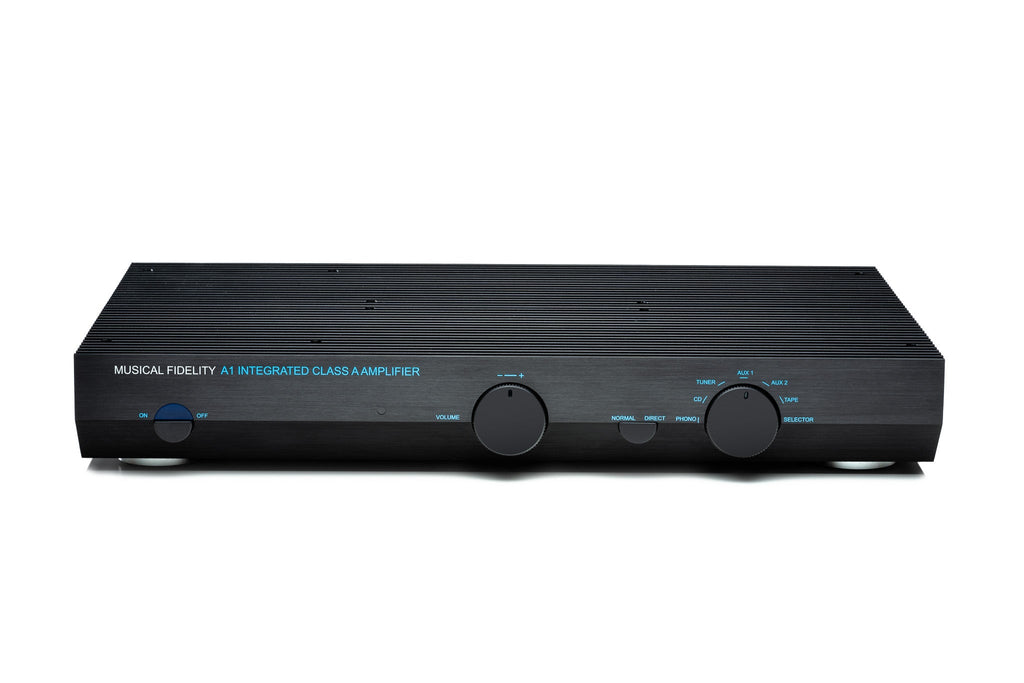 "Musical Fidelity's A1 integrated amplifier takes music lovers back in time, reviving the signature slim body and much of the internals of the company's original model launched in the 1980s. This amplifier remains fully analogue, with an MM/MC turntable connection, line inputs and tape loop connection, but now benefits from carefully designed upgrades to the power supply and internal cooling. It also features a welcome Direct mode that bypasses the preamp gain.