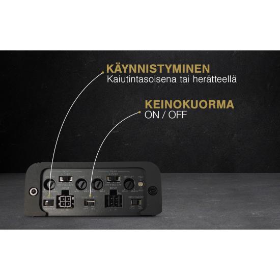 - D-luokan hyötysuhde takaa maksimaalisen tehon minimaalisella lämmöntuotolla ja minimaalisella säröllä.