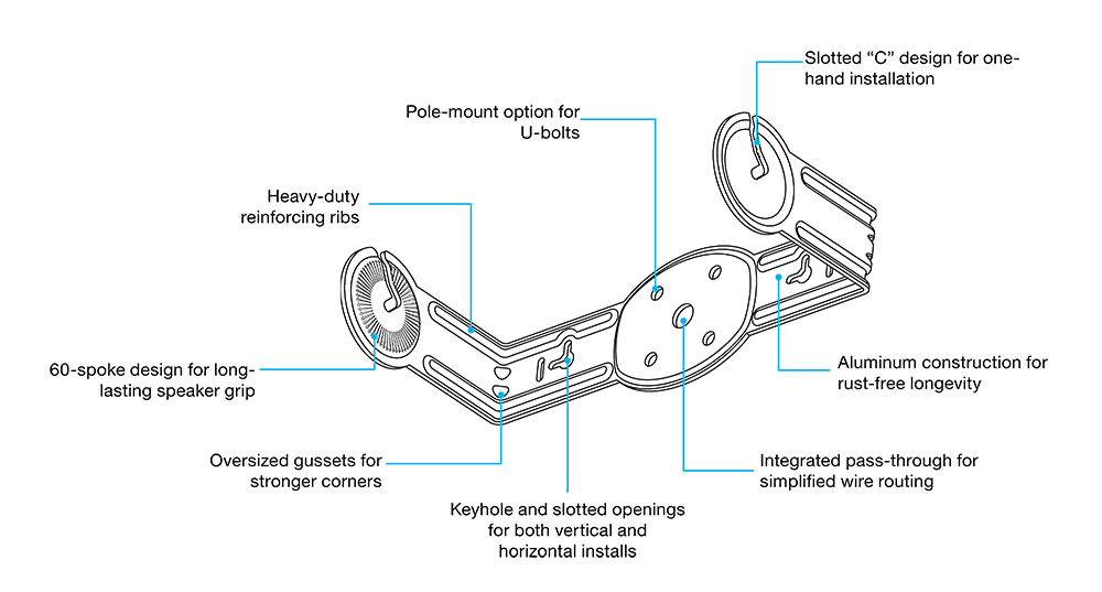- Rugged, One-Handed Mounting Bracket