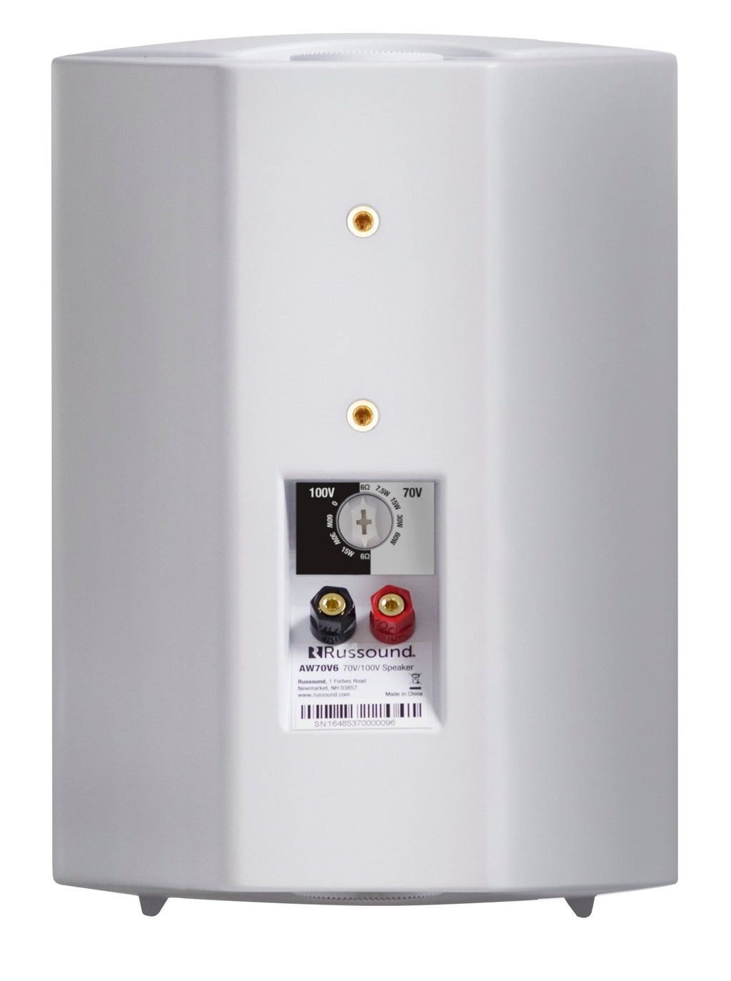 Based on the technology used in Russsound's OutBack series of indoor/outdoor loudspeakers, the AW-70V-6 series of surface-mount loudspeakers are perfect for both commercial and residential applications where a 70v or 100v amplification system is being used. Flexible mounting options allow for on-wall mounting vertically, horizontally, in corners, under eaves, on poles, and offer heavy-duty 1/4"-20 brass inserts for any compatible 3rd party mounting system. The ported 2-way design is excellent for music and voice reproduction and the durable design and construction assures years of trouble-free operation.
