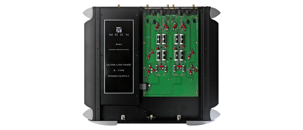 MOON 610LP -levysoitinesivahvistin hyödyntää dual-mono-rakenteen ja täysin tasapainotetun differentiaalipiirin, ja sen puhdaslinjainen muotoilu perustuu vahvasti referenssiluokan MOON 810LP -malliin
