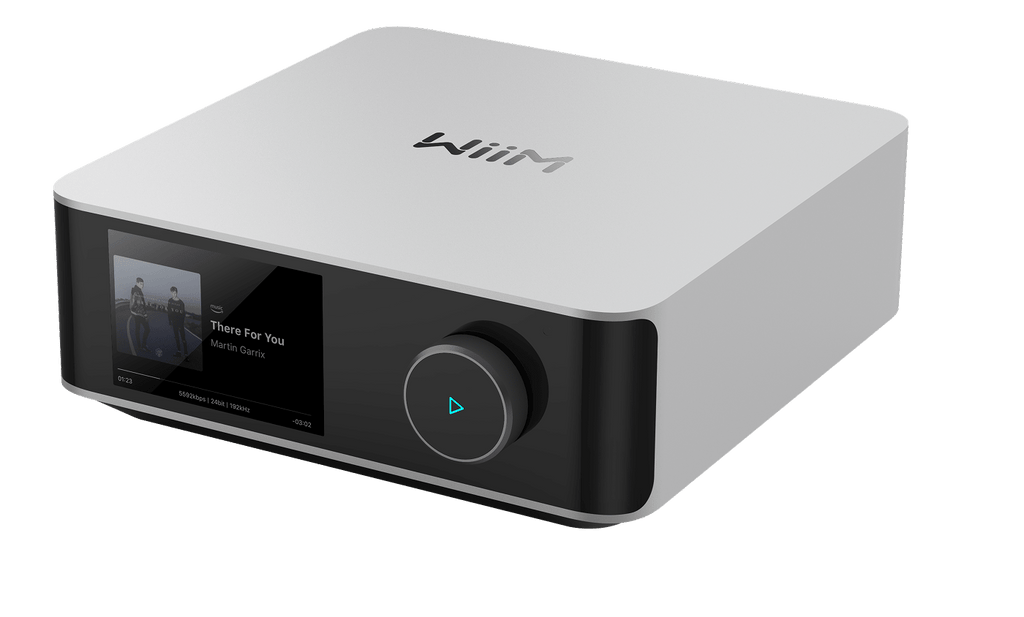 The WiiM Amp Ultra combines clear, powerful audio with top-notch streaming capabilities in a compact, aluminum unibody housing. A 3.5-inch touchscreen and rotary control knob on the front provide an intuitive user experience