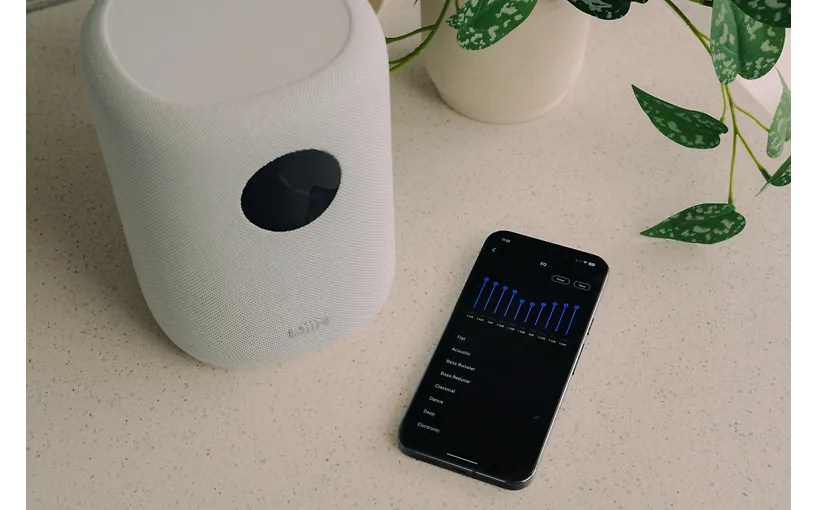 Kaiuttimen asennus on yksinkertaista: liitä virta, yhdistä Wi-Fi-verkkoon WiiM Home -sovelluksella ja suorita AI RoomFit™ -huoneakustiikan mittaus. Näin ääni mukautuu juuri sinun tilaan sopivaksi.