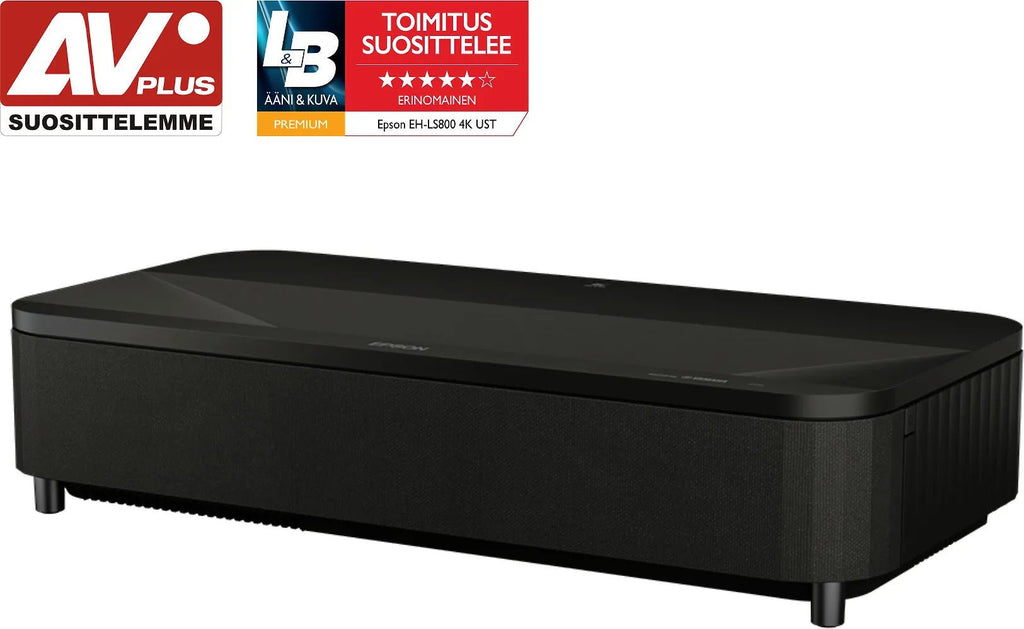 Nauti entistä jännittävämmästä kotiviihteestä suuremmassa koossa ilman pysyvästi esillä oleva TV:tä. Epsonin erittäin lyhyen heijastusetäisyyden EH-LS800B 4K PRO-UHD -laserprojektori-TV on tyylikäs ja siinä on Android TV. Projektori heijastaa 2,03 m:n kuvan vain 2,3 cm:n etäisyydeltä seinästä. Säätämällä etäisyyttä saat kotiteatteriisi jopa 3,81 m:n kuvan. Epson EH-LS800 on myös saatavilla valkoisena.