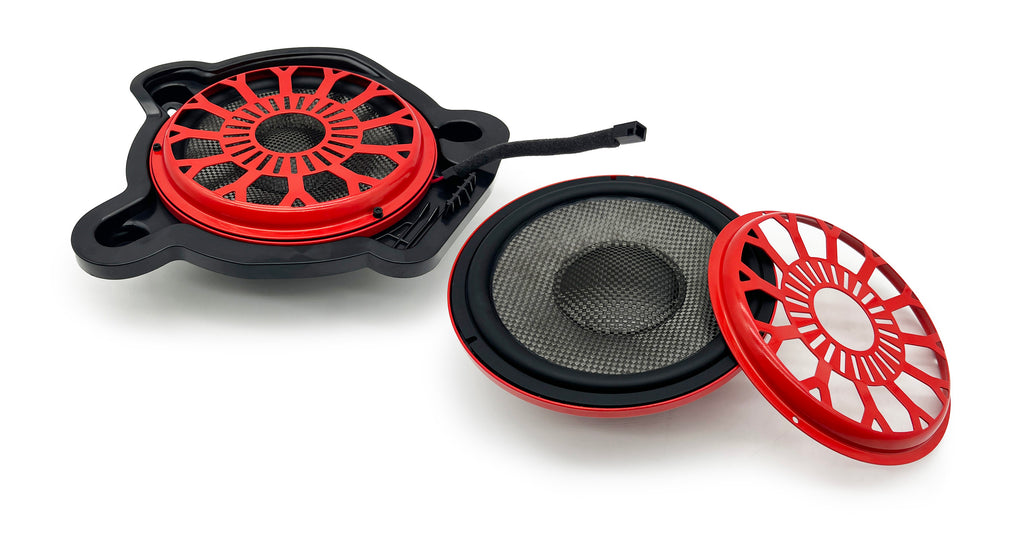 The bass section is delegated to the new MB SUB 200 that features the ESB optimized motor design and special carbon fiber cones that ensures extraordinary rigidity combined with a very low weight, bringing enormous benefits in terms of naturalness of reproduction and high transient dynamics. The MB SUB 200 delivers powerful, high-quality sub-bass frequency. These speakers have a shallow depth and provides special adapters to match car spaces exactly. The connectors match the car’s original wire connectors for ultimate plug and play convenience.