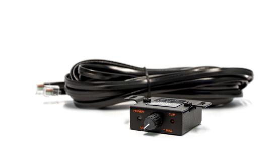 Vahvistimen mukana tulee johdollinen tasonsäädin klippivalolla, jolla subin tasoa on helppo ja nopea säätää kuskin paikalta. Klippivalo syttyy, jos toisto ylittää yhden prosentin särön.