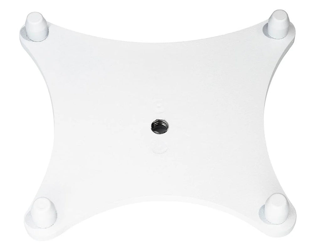 Lattiajalustan adapterit on suunniteltu käytettäväksi yhdessä Iso-Podin kanssa. Iso-Pod mahdollistaa kaiuttimen kallistamisen optimaalisen kohdistuksen saavuttamiseksi. Asenna lattiajalustan adapteri jalustan 3/8" kierteeseen ja varmista, että ruuviliitokset ovat tiukat. Aseta Iso-Pod jalustalevyn neljän nastan päälle.