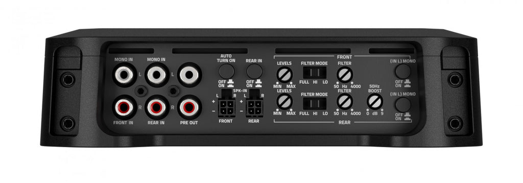 Laitteessa on tasokkaasti suojatut ja balansoidut Pre-in ja Hi-in signaalitulot, mikä mahdollistaa puhtaan ja häiriöttömän signaalinsiirron. Täydellinen säätömahdollisuus, mukaan lukien säädettävät tulotasot, yli- ja alipäästö jakosuotimet (50 - 4000 Hz 12dB/Oct.) ja bassovahvistus, antaa käyttäjille joustavuutta hienosäätää ääni mieltymystensä mukaan.