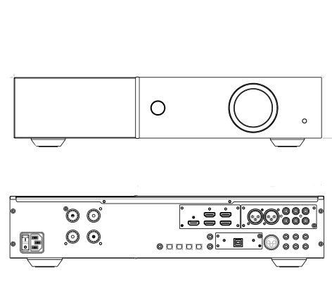 Optional modules: HDMI module with 3 inputs (≤192kHz/24 bit) and one output / CEC and ARC compatible, Streaming USB input module (≤384kHz/32 bit + DXD / DSD64 / DSD128), High-end analog input module (1 Phono (MM), 3 analog Line inputs)
