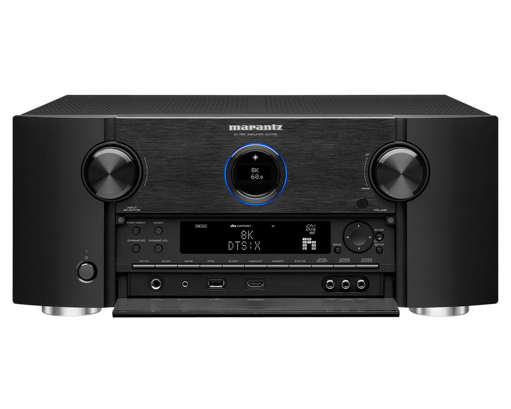 Marantz AV-7706 on sinulle joka vaadit äärimmäistä suorituskykyä kotiteatteriltasi. 11.2 kanavainen AV-prosessori ja esivahvistin, joka on suunniteltu käytettäväksi korkealaatuisilla kaiuttimilla sekä päätevahvistimilla. AV-7706 sisältää kaikki viimeisimmät ominaisuudet, kuten Dolby Vision ja vertaansa vailla olevat 3D- tilaääni ja HEOS suoratoisto toiminnot. AV7706 kykenee parantamaan äänenlaatua käsittelemällä kaikkia signaaleja yksilöllisesti käyttämällä Marantzin omaa HDAM-esivahvistin tekniikkaa. Käyttössäsi on XLR sekä RCA-lähdöt aina 11.2 kanavaan asti.