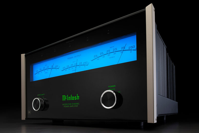 Anna kotiteatterillesi sen ansaitsema teho MC255 5-kanavaiselle kotiteatterivahvistimella. MC255:ssä on silmiinpistävä uusi TripleView -virtalähtömittari, joka osoittaa itsenäisesti vahvistimen kolmen etukanavan reaaliaikaisen teholukeman. Kolmen erillisen mittari-ikkunan sijasta, tässä mallissa on helposti luettavassa 38cm leveässä TripleView-näytössä kolme perinteistä mekaanista mittaria yhdessä kotelossa. Vaikka tämä on täysin uusi muotoilu, kaikilla kolmella huippuvasteen omaavalla osoittimella on sama houkutteleva liike ja varma toimivuus, josta McIntosh-mittarit tunnetaan. TripleView-mittarin lumoava ilme, vieraanvarainen hehku ja tavaramerkillä varustettu sininen valaistus on sammutettavissa, jottei se kilpailisi television tai elokuvanäytön kanssa.