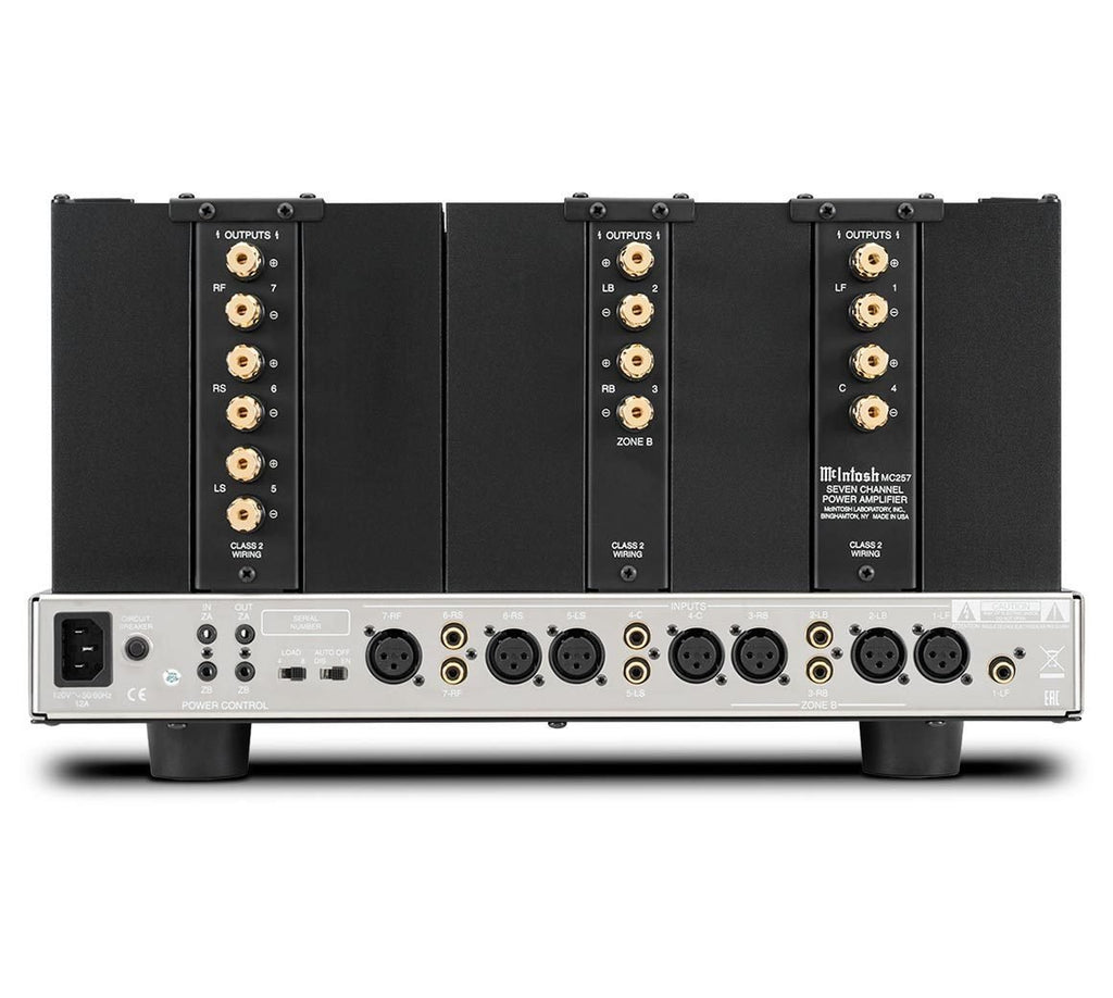 MC257 toimii viileästi ja hiljaisesti viiden McIntosh Monogrammed Heatsink:n ansiosta, jotka on kytketty edistyneisiin suurivirtaulostulotransistoreihin, jotka jäähdyttävät vahvistimen tehokkaasti. Kaiutinliittimet on päivitetty kullattuihin sidontapylväisiin, jotka estävät korroosiota ja varmistavat, että kotiteatterikaiuttimiin lähetetään laadukas signaali. Perinteiset McIntosh-nupit koristavat etupaneelia mittarin valojen ja virtatoiminnon ohjaamista varten. Suora LED-taustavalo on lisätty etupaneeliin parantamaan värien tarkkuutta ja kestävyyttä. Ympäristöystävällinen virranhallintajärjestelmä sammuttaa vahvistimen tietyn ajan kuluttua, kun tulosignaalia ei ole havaittu.