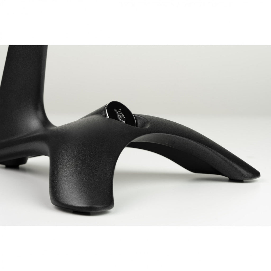 Jalustan takana on taittuva evä, joka on suunniteltu helpottamaan kaapeleiden säilytystä. Tämä yksinkertainen mutta merkittävä lisäys varmistaa, että kuuntelutilasi pysyy siistinä ja järjestyksessä.