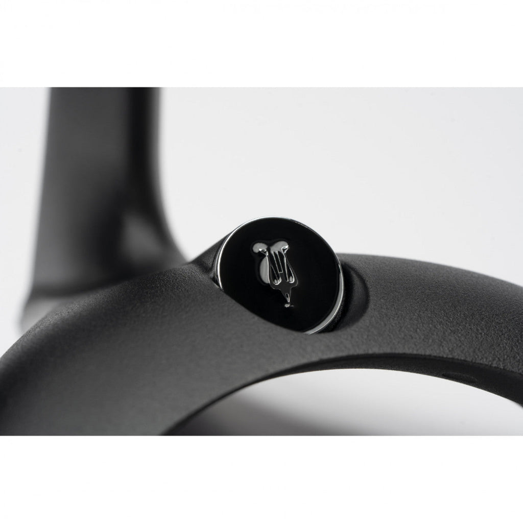 Manta on valmistettu valetusta sinkkiseoksesta, joka on pinnoitettu pulverimaalilla, ja se on todellakin rakennettu kestämään aikaa ja käyttöä. Noin 1,5 kg paino antaa viitteitä jämäkkyydestä. Tukeva muotoilu täydentyy vaikuttavalla mattamustalla viimeistelyllä. Vahvistetun vegaaninahkaisen päätuen ja silikonityynyjen lisääminen takaa sekä vakautta että suojaa sekä kuulokkeille että kalusteelle, jonka päälle Manta on asetettu.