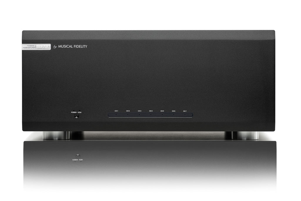 Tämä monikanavainen ihme on suunniteltu highend-kotiteatterin tehoa vaativille kaiuttimille. M6x 250.7 tarjoaa kaikkiin seitsemään kanavaa tehoa 150 wattia, yhdistäen suuren dynamiikan sekä voimakkaan, läpinäkyvän ja rikkaan äänentoiston. Vahvistin on sijoitettu tukevaan metallikoteloon, jossa on paksu alumiininen etupaneeli. Laite sisältää kaksi Musical Fidelityn ”Super Silent” -toroidimuuntajaa, jotka syöttävät virtaa seitsemälle erilliselle vahvistinmoduulille, joista jokaisella on oma jäähdytysjärjestelmänsä. Laitteessa on bi-amp-mahdollisuus ketjutettujen ulostulojen ansiosta, ja käyttäjä voi valita joko balansoidut tai balansoimattomat liitännät.