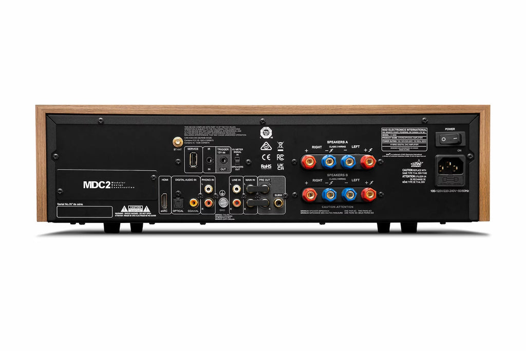 Vintage-ulkoasun kätkee sisäänsä täysin modernin vahvistimen edistyneillä ominaisuuksilla kuten HybridDigital UcD-vahvistin, MDC2 modulipaikka BluOs/Dirac modulille sekä HDMI eARC sisääntulo.