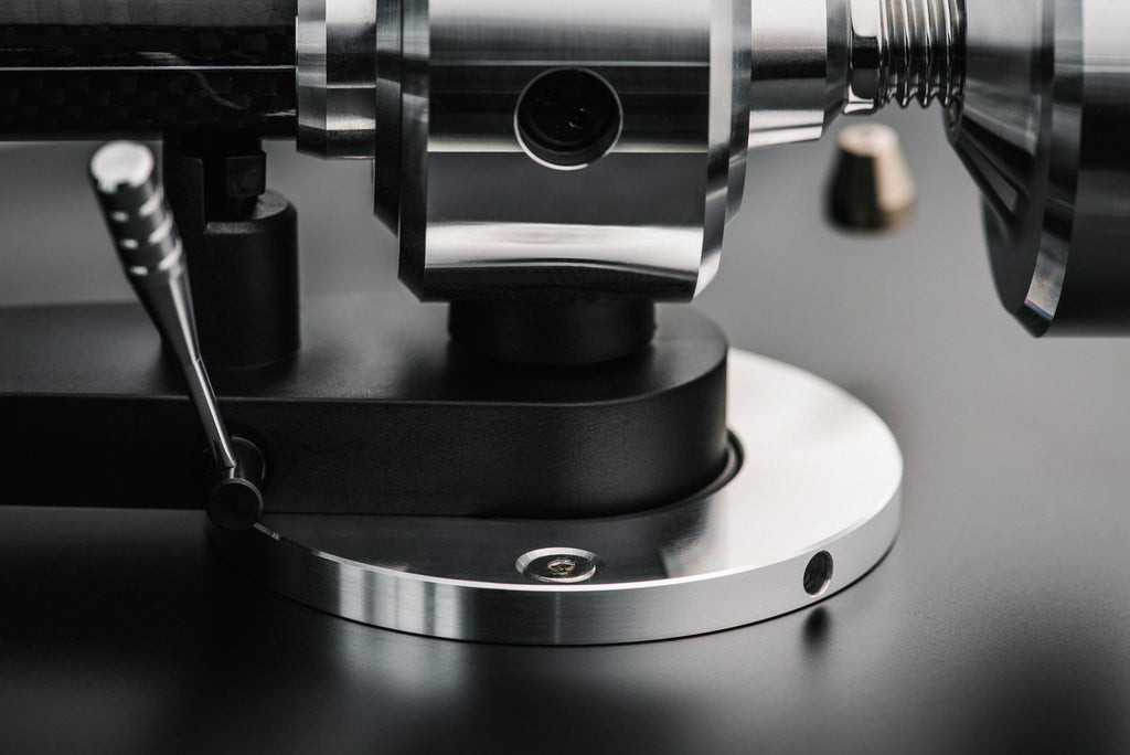 Äänivarren korkeutta voidaan säätää portaattomasti löysäämällä kahta kiinnitysruuvia, mikä tarjoaa joustavuutta äänirasioiden korkeuksien tai levysoittimen eri mattojen vaihteluihin mukautumiseen. Näiden edistyneiden säätövaihtoehtojen avulla asetusten hienosäätö on helppoa.
