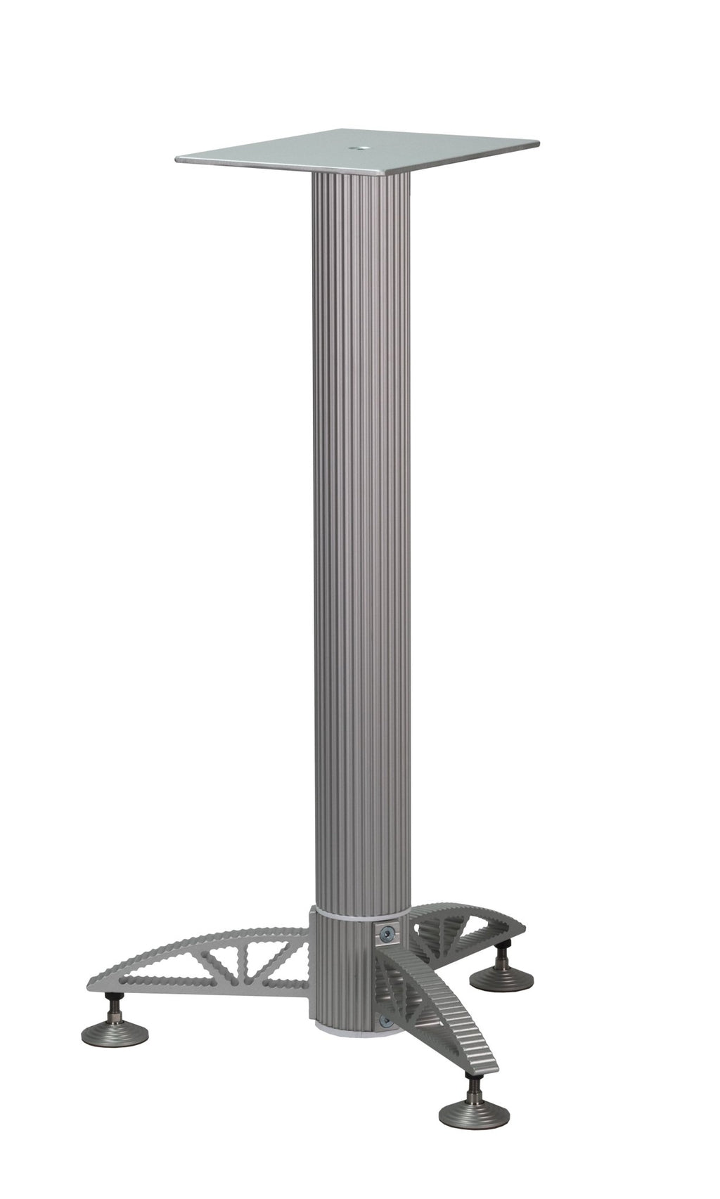 Model 5 is a one pillar stand with a modern look. The base is a three feet extrusion which design is in-line with the form of the pillars. The stands are available in silver, black and copper.
