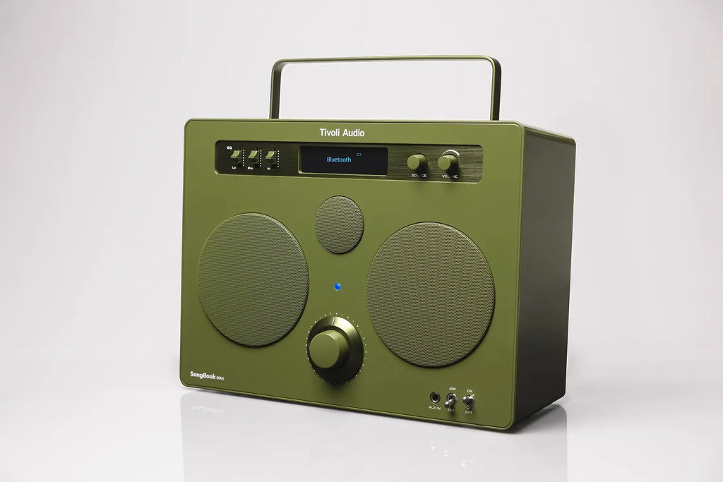 Ajattoman ulkomuodon ja modernit toiminnot yhdistävä Tivoli Audio SongBook MAX on todellinen Bluetooth-kaiuttimien katseenvangitsija, jonka retrohenkinen ulkomuoto ja valloittava väritys eivät varmasti jää huomaamatta. SongBook MAX on tehty isolle äänelle. Bluetooth-suoratoisto, kantokahva, IPX4-suojaus ja jopa 10 tuntia kuunteluaikaa täydellä latauksella tarjoava sisäinen akku tekevät siitä erinomaisen kaiuttimen myös mukana kuljetettavaksi.