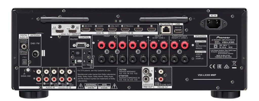 VSX-LX305 9.2-kanavainen AV-vastaanotin tuo moniulotteista jännitystä kotiviihteeseesi. Dirac Live® Room Correction -ominaisuuden mukaan VSX-LX305 on suunniteltu ja rakennettu kulmakiveksi äärimmäisen elokuvien, musiikin ja pelaamisen kokemuksen tarjoamiseksi.